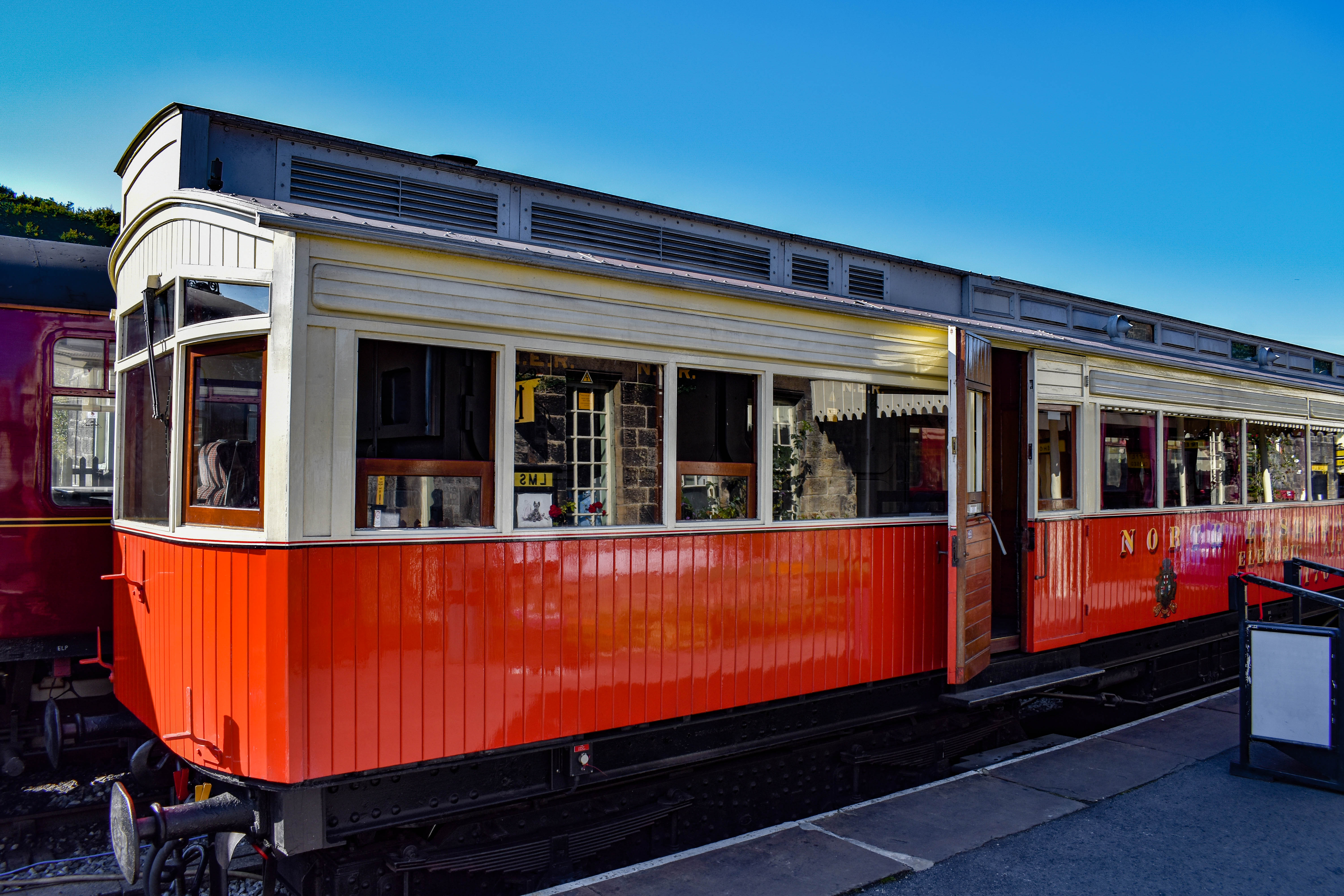 It’s another day in sunny Yorkshire and we’re visiting the Embsay and Bolton Abbey railway. The line originally ran from Skipton but closed in 1965. Interestingly, the adjacted railway line which serves Swinden Quarry was never closed and is still in operation today with around 4 trains a day. The grand plan of the railway is to continue laying the track to the west and reinstate the point with the mainline which already exists to the quarry to allow trains to continue on to Skipton. You would think it’s a simple task but no. There is a huge amount of work that needs to be done to plug the signalling into the National Rail infrastructure and equal amounts of red tape to cut through. For now, we get to enjoy the restored 5 mile route and even better, in a restored Electric Autocar from 1903.