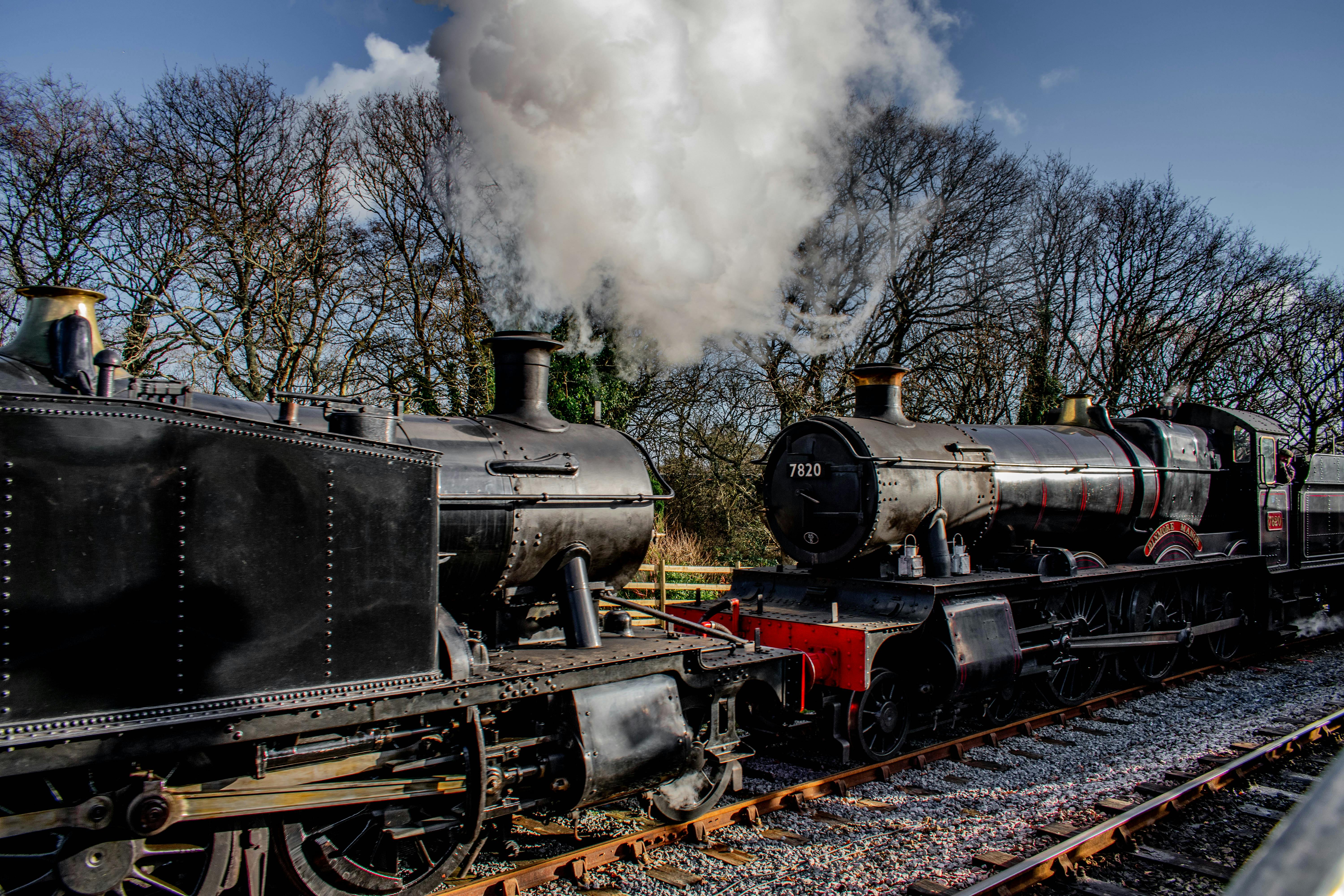 The services today were frequent but there were also a few surprises along the way. As well as the autotrailer, there was a double-header service comprised of the Prairie and Dinmore Manor. They always say not to stick your head out of the carriage windows when the train is moving, but with this panting away at the front, how could I resist. This was spectacular to travel on and even better to photograph. My standout photo of the day has to be the following one…