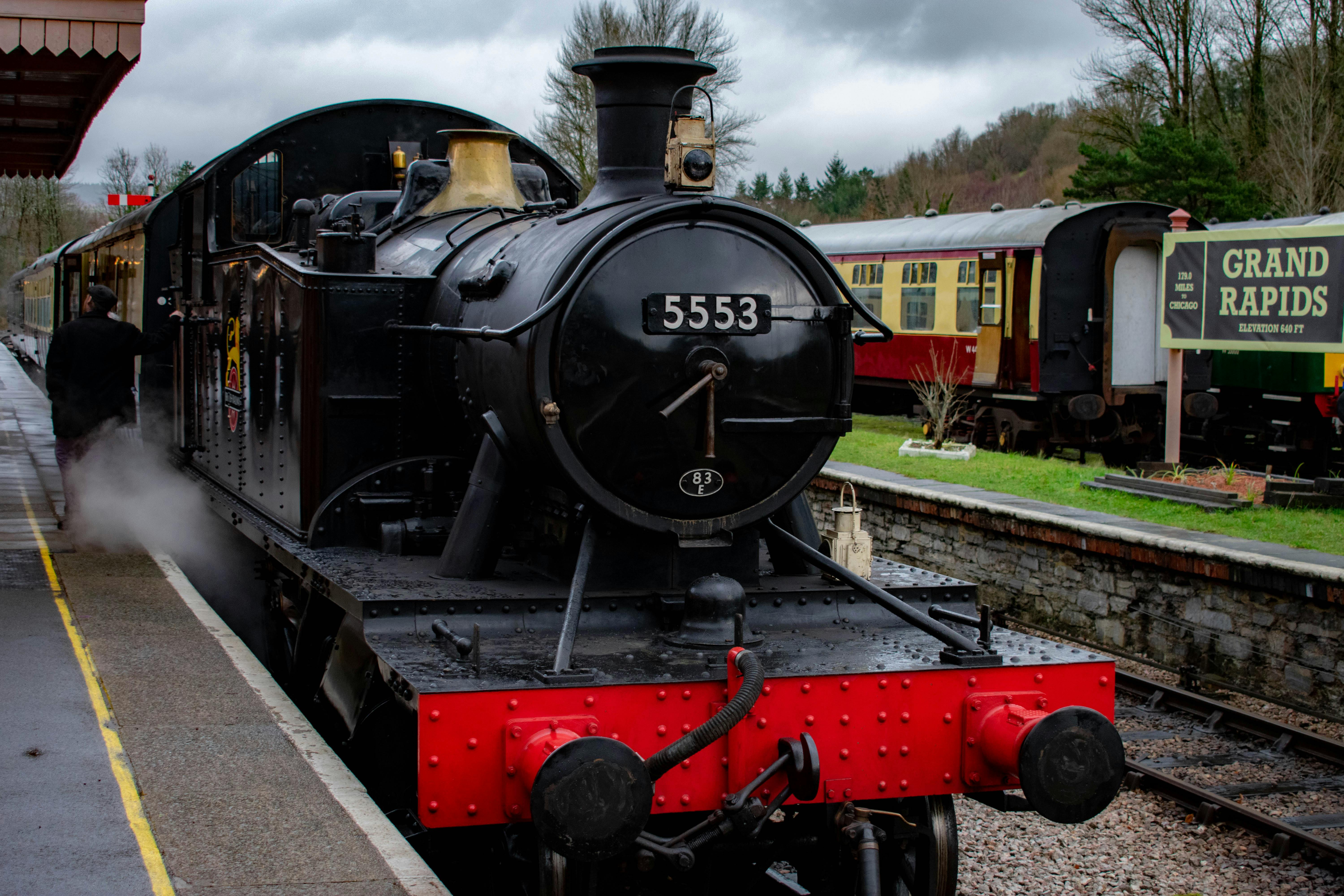 Once Dinmore Manor is clear, it’s time for the next departure. This time it’s hauled by a GWR Prairie class No 5553. Interesting fact about this loco is that it was the last locomotive to leave Barry scrapyard in 1990 and holds the record of all locomotives for longest time there. She’s far from the scrapyard days now and has been in preservation for over two decades now.